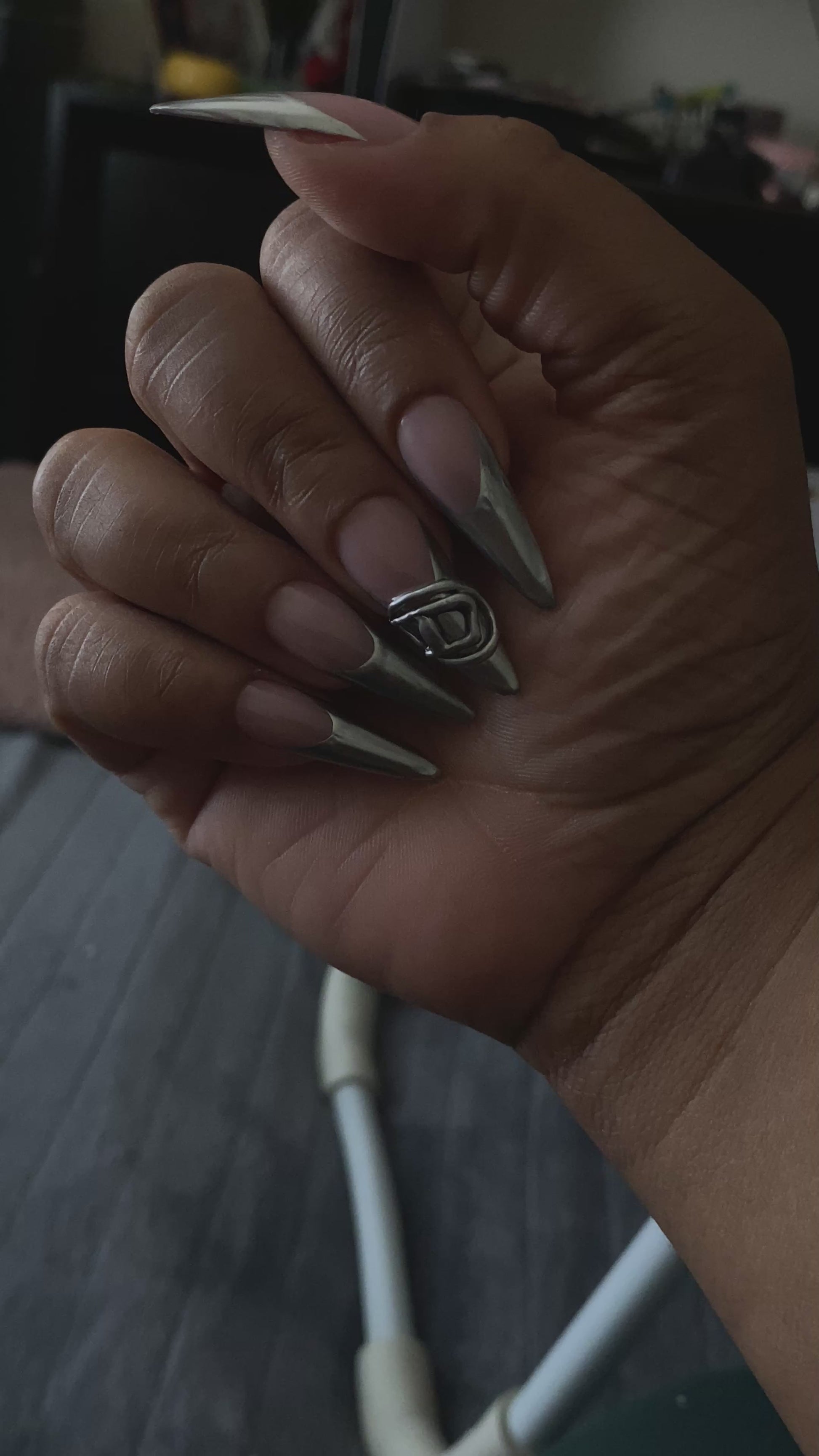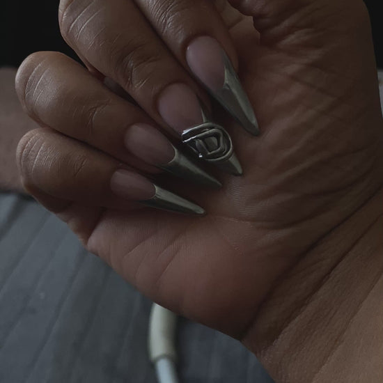 Inspired by early-2000s fashion and racing culture, this bold red set features chrome pointed tips and hand-painted lettering. Clean, sharp, and confident—this is a power set.